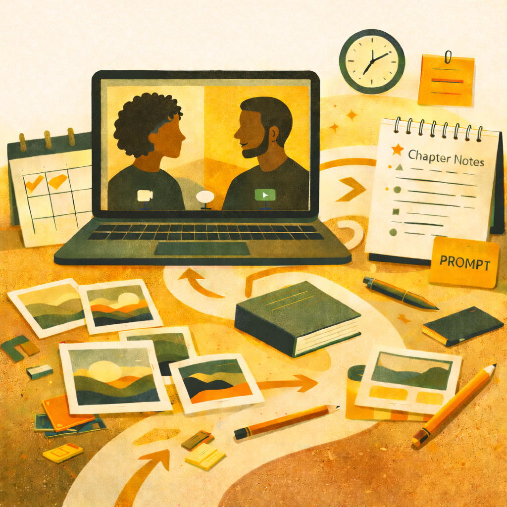 Treat the live sessions as the core of the experience. If you miss one, you’ll still receive the Chapter Notes, but access to recordings should not be relied on as a substitute for attending live.